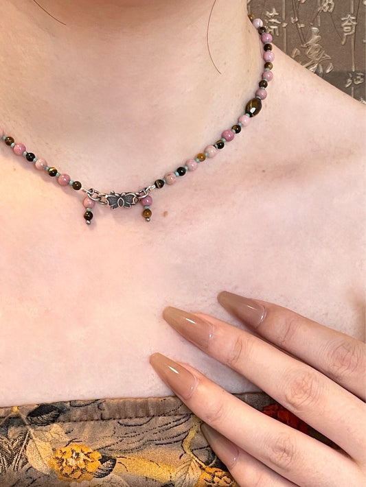 • Natural Pink Stones Beaded Butterfly Bracelet
