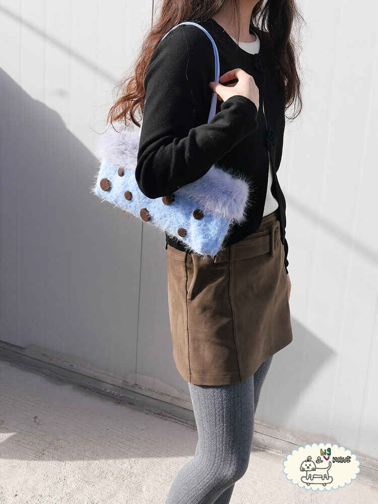 Blue Polka Dot Plush Shoulder Bag