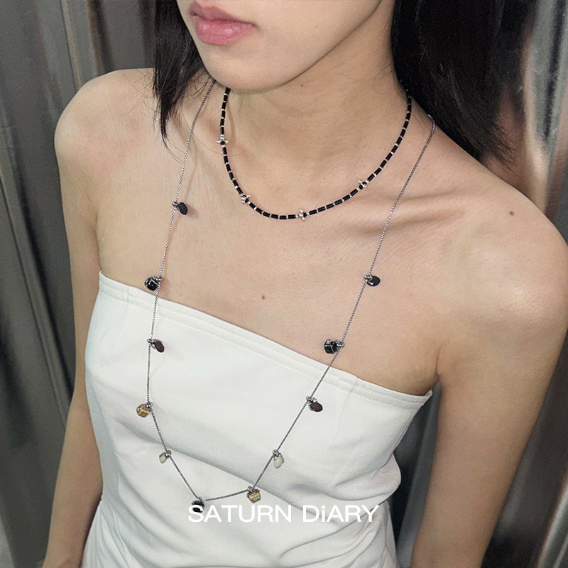 Ceramic Square Bead Stacked Titanium Steel Necklace