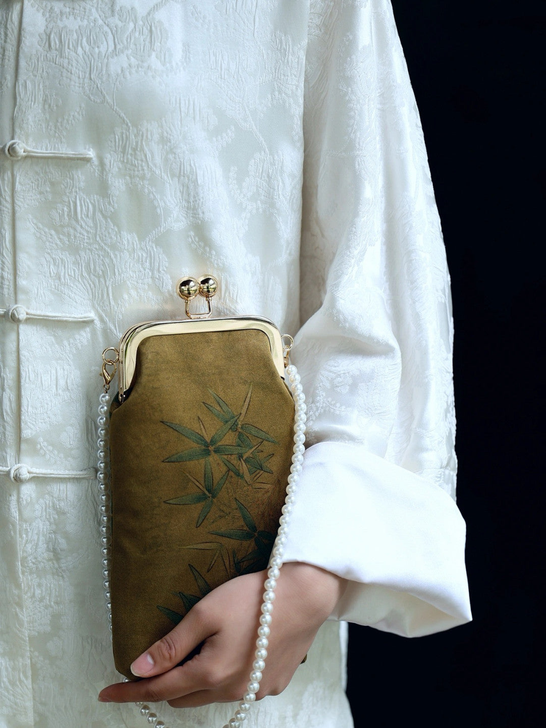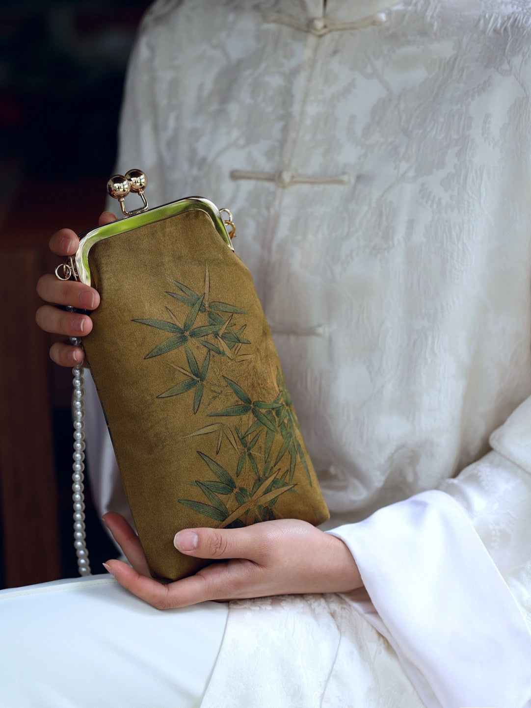 [Chinoiserie] Luxury Bamboo Leaves Silk Frame Clutch Bag