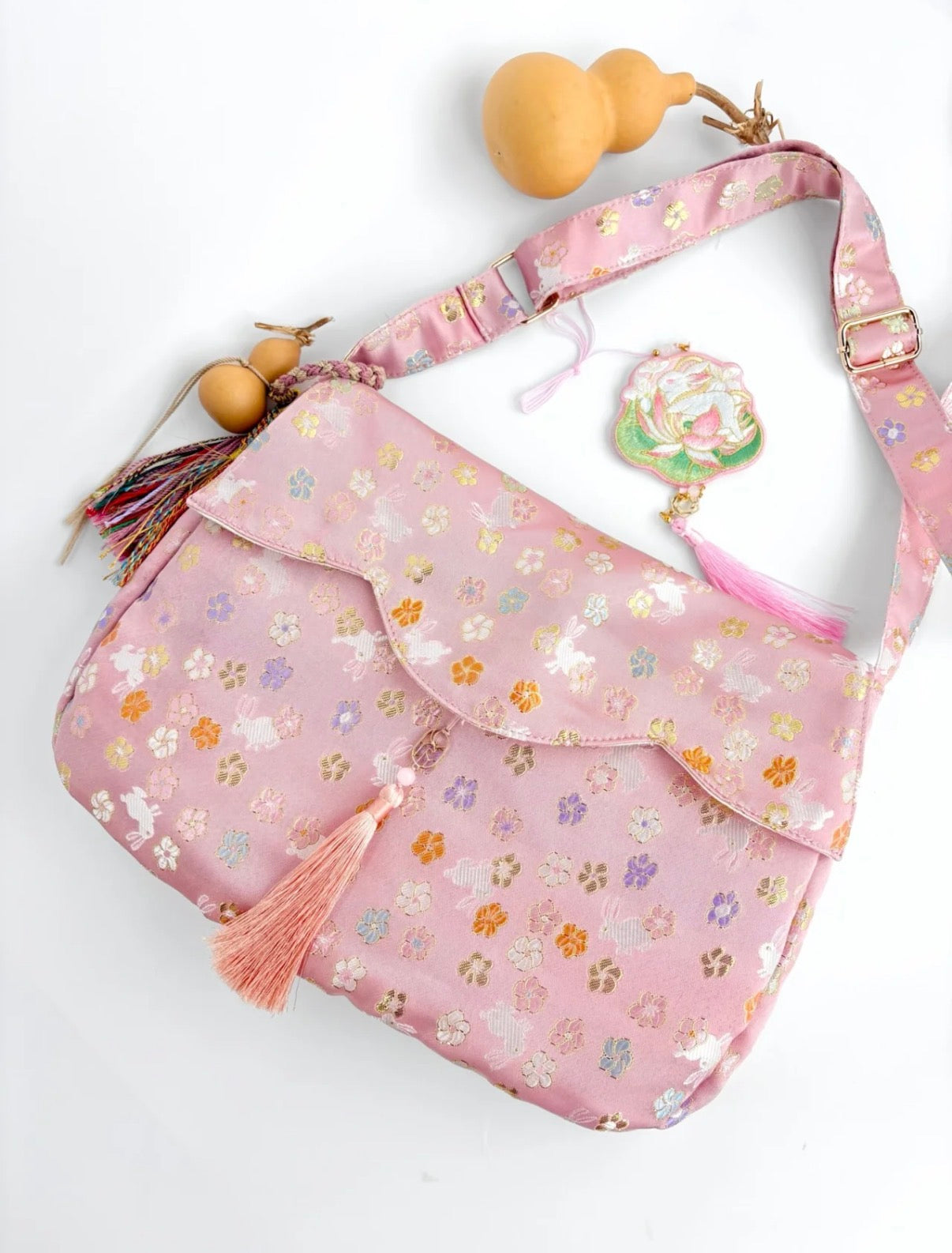 [Chinoiserie] Tang-Inspired Auspicious Patchwork Pink Crossbody Bag