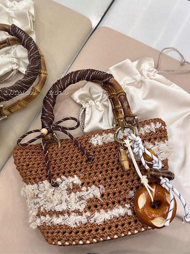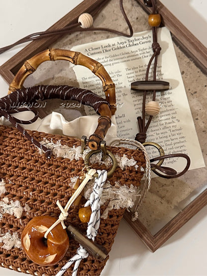 Chocolate Cookies Crochet Bamboo Handle Bag