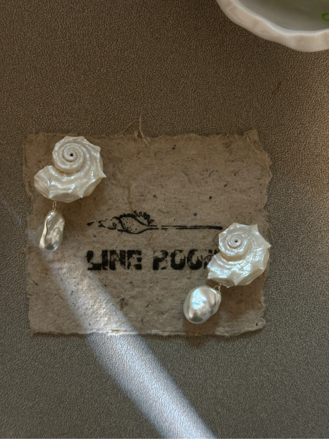 Handmade from conch shell fragments and pearls, these earrings capture the delicate beauty of ocean tears. The organic shapes and iridescent textures evoke a sense of coastal serenity, making them perfect for adding a touch of ethereal elegance to everyday wear or beachside occasions.