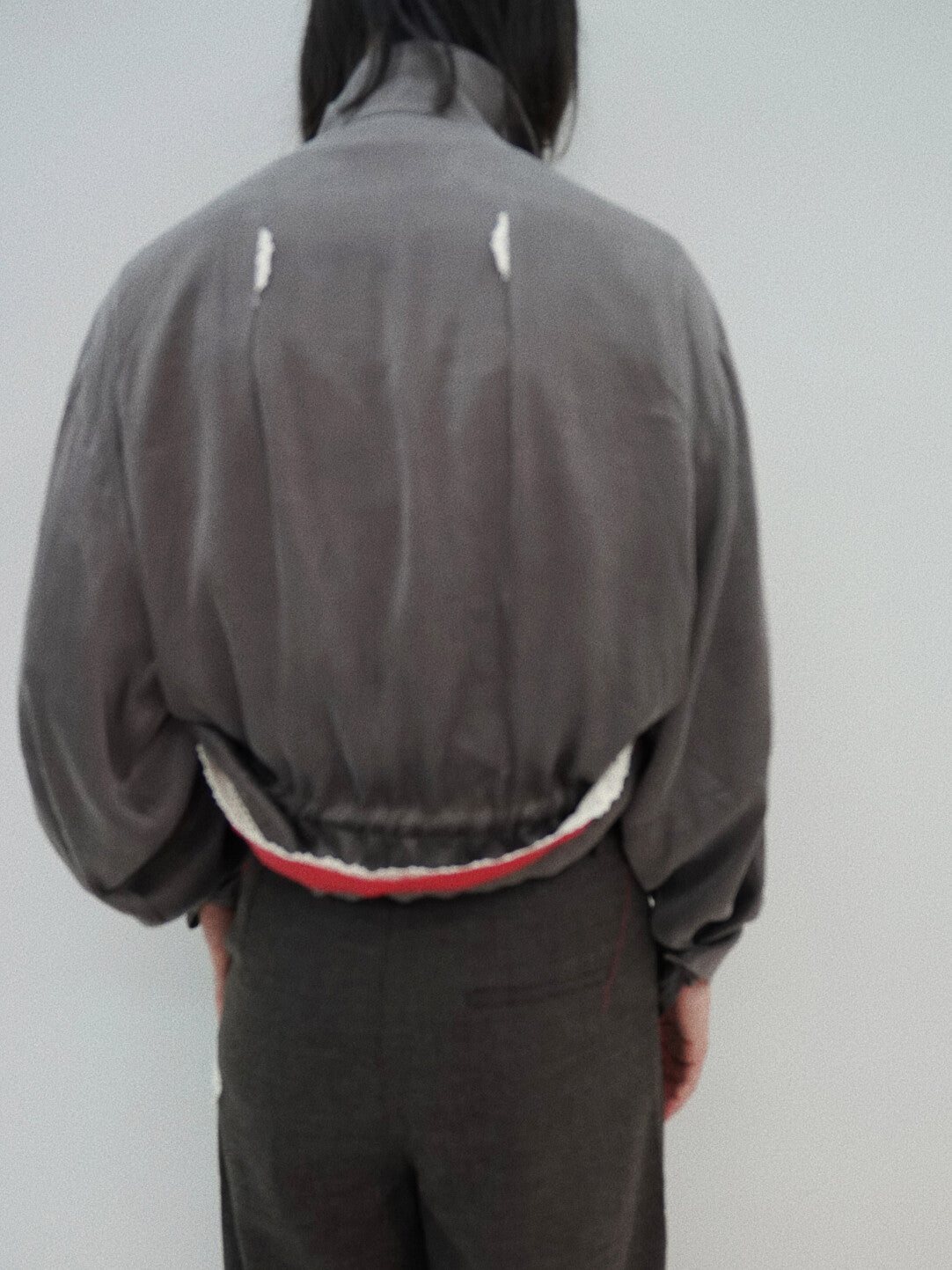 Creative Gray-Red Drawstring Outerwear
