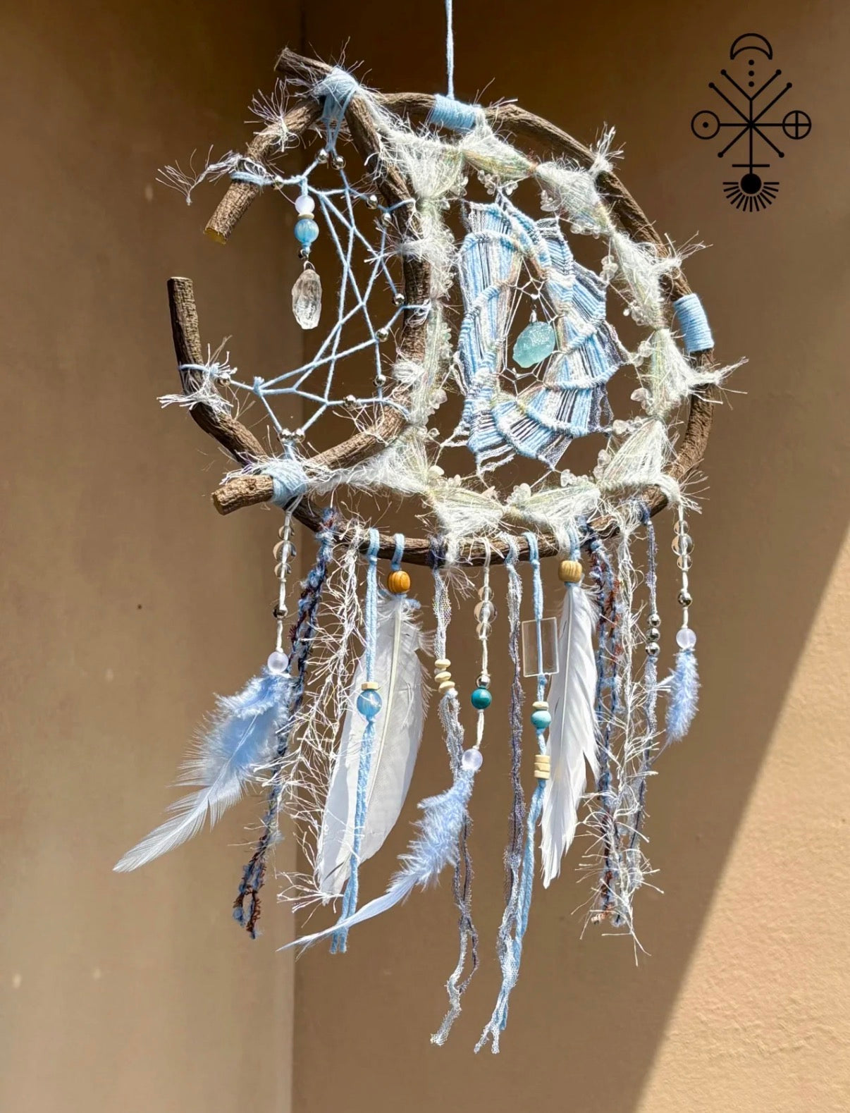 Catch your wildest dreams with this enchanting crescent moon dreamcatcher! Handcrafted with meticulous care, this whimsical piece features a graceful curved silhouette adorned with delicate feather and yarn beaded tassels that dance gently in the breeze. Choose from a stunning palette of colours to match your unique style and home décor. Perfect for adding a touch of bohemian magic and exotic charm to any room, this dreamy accessory transforms ordinary spaces into sanctuaries of wonder and wanderlust. Let your imagination soar!