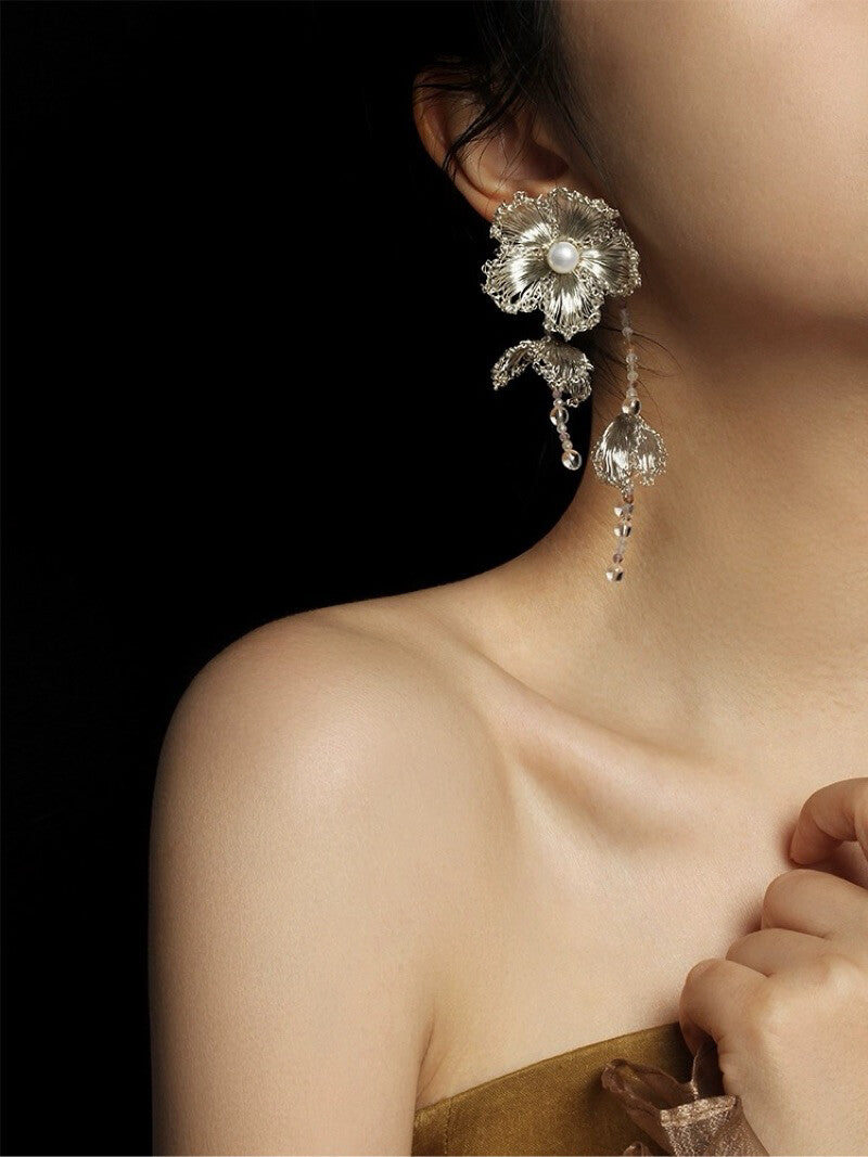 Handcrafted with gleaming metal wire, freshwater pearls, rock crystal, and vibrant auralite, these luxury Crochet Hawthorn Flowers Tassel Earrings is perfect for parties or special nights out. Made by hand to shine and catch the eye.