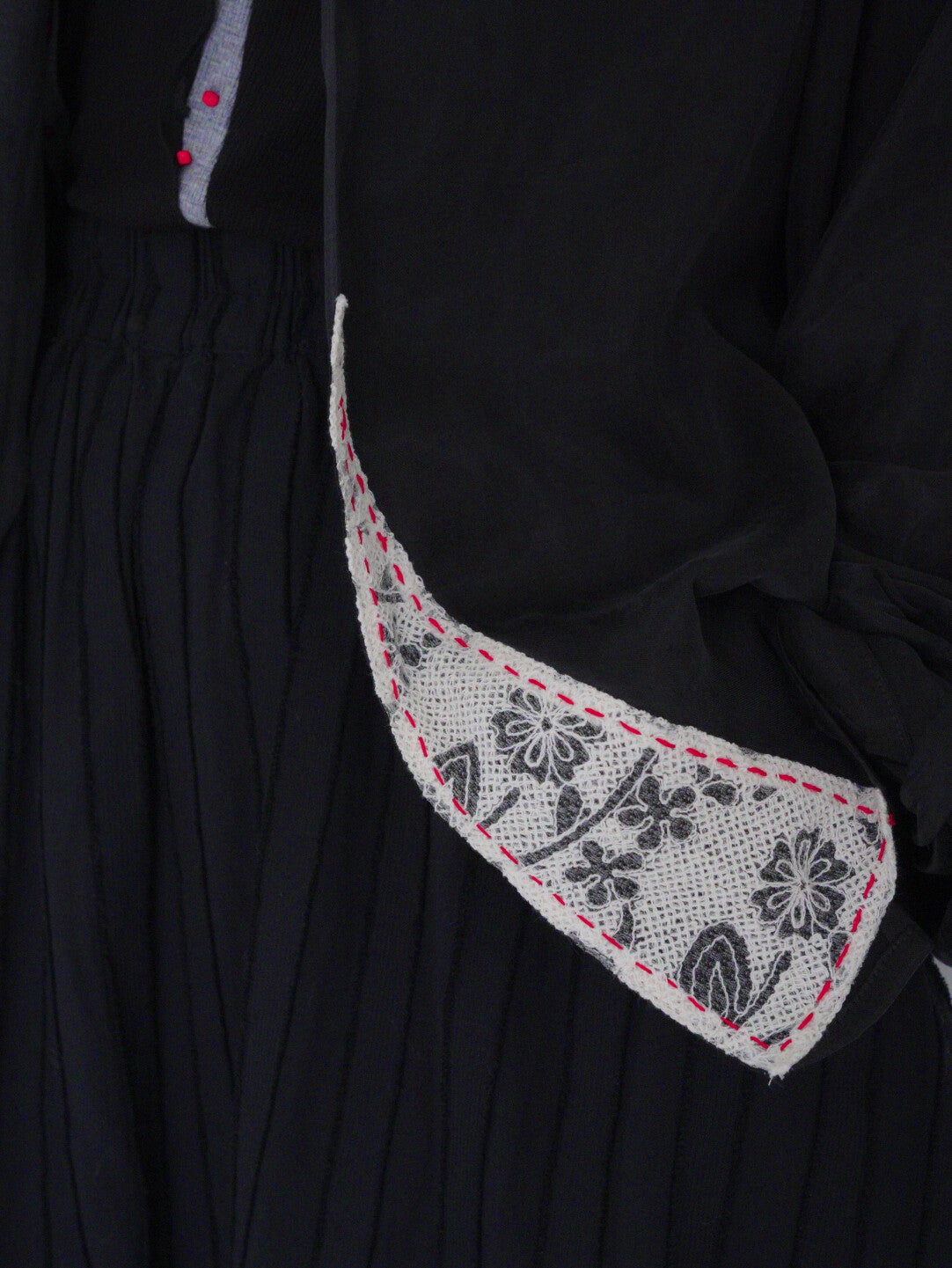 We recommend using a neutral detergent and either hand washing or dry cleaning. Do not expose to direct sunlight or high-temperature ironing. Use water below 40°C.