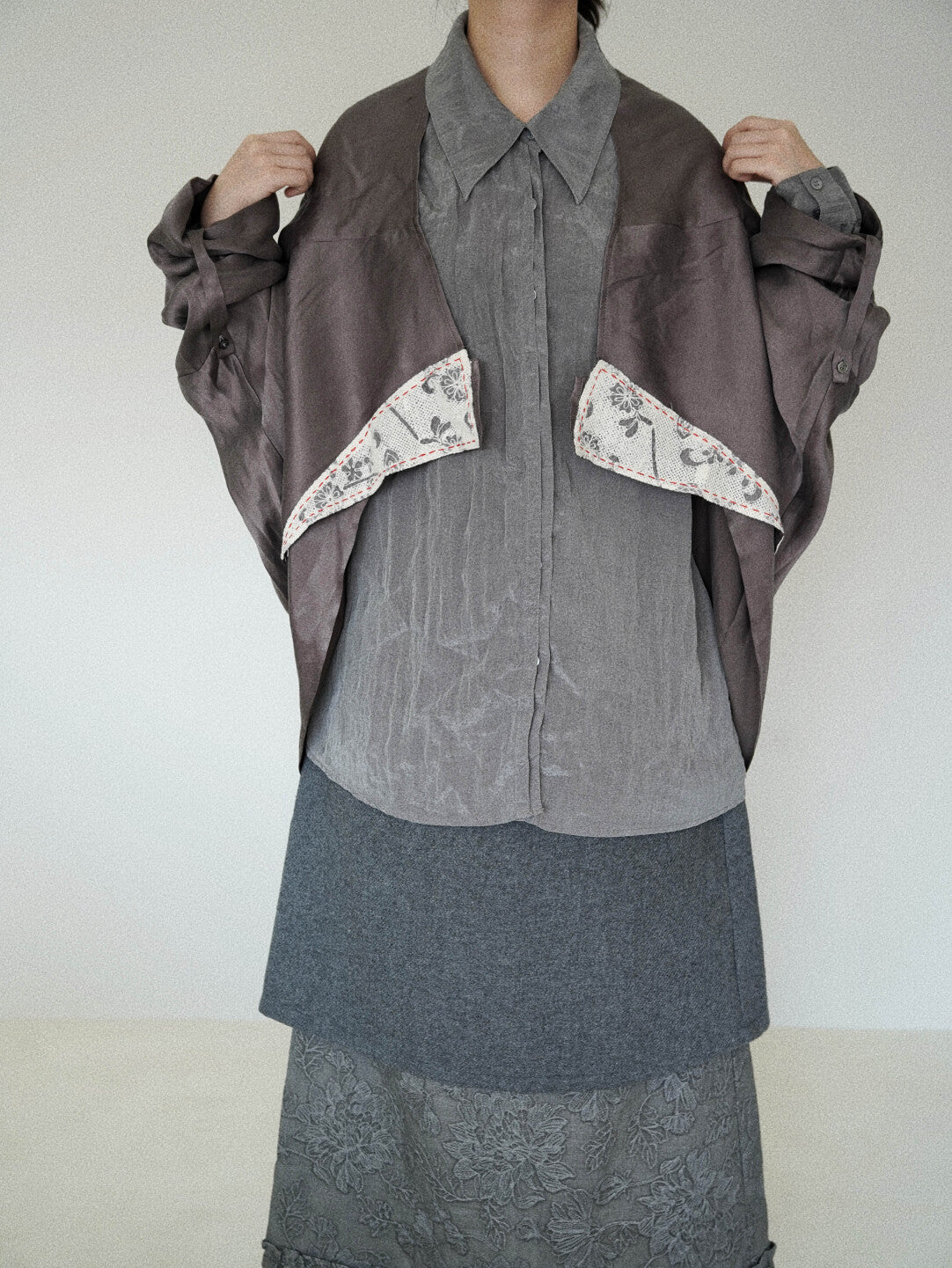 A design-forward jacket that makes a statement, this piece features relaxed pleating and an effortlessly cool silhouette. Printed patchwork panels create visual intrigue and artistic flair throughout. The soft cupro fabric feels luxurious against the skin while maintaining that carefree, go-with-the-flow vibe. Throw it on over anything and instantly elevate your look with understated creativity and undeniable style.