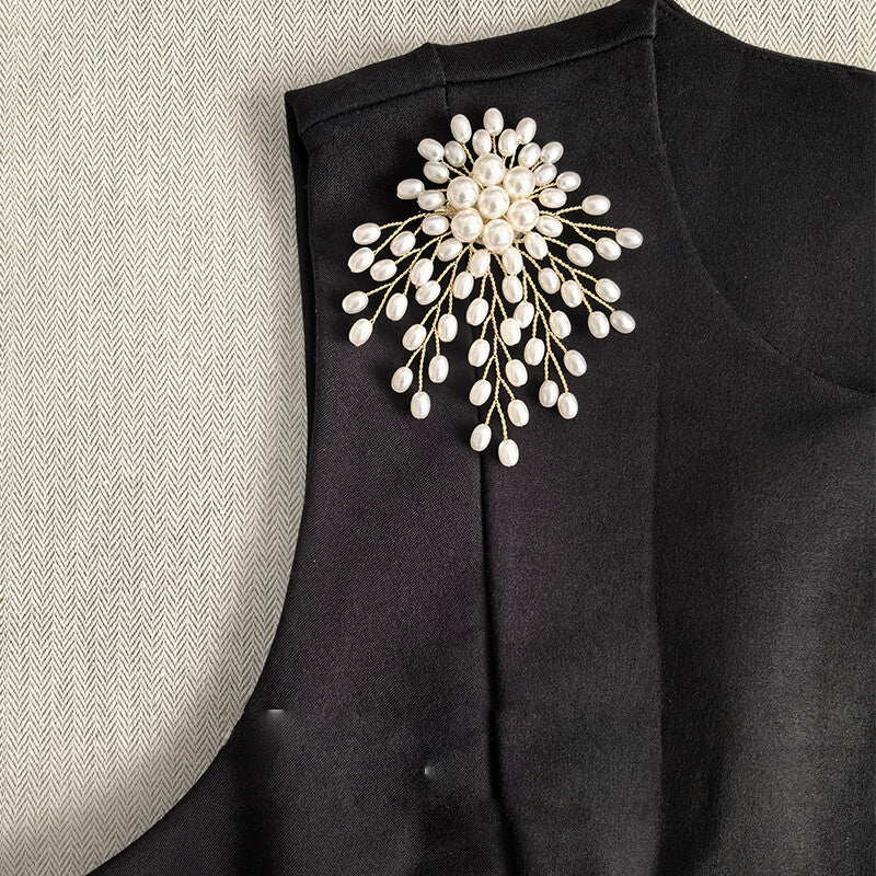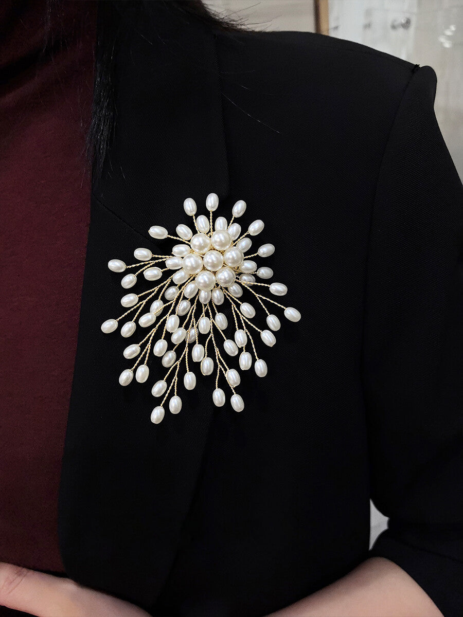 Delicately crafted from alloy and pearls, this floral brooch features intricate copper wire work that captures the graceful form of a blooming flower. It offers a lightweight yet statement-making accent for scarves, lapels, or bags—blending vintage charm with artisanal elegance.