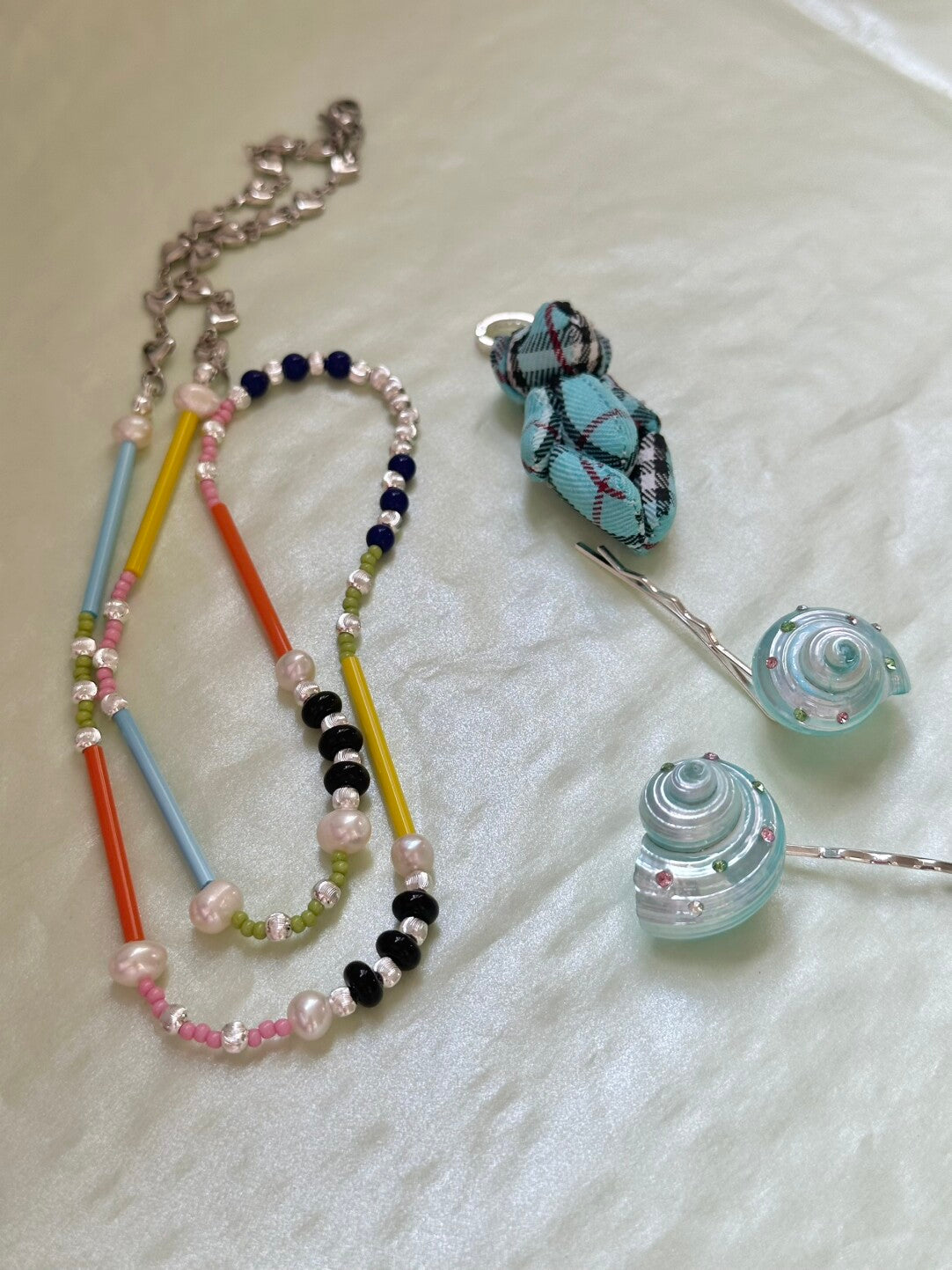 The Mint Conch Hair Clip is a delightful accessory featuring a sea shell design adorned with colorful rhinestones. Its playful and sweet style adds a unique touch to any hairstyle, making it perfect for expressing your fun and vibrant personality.