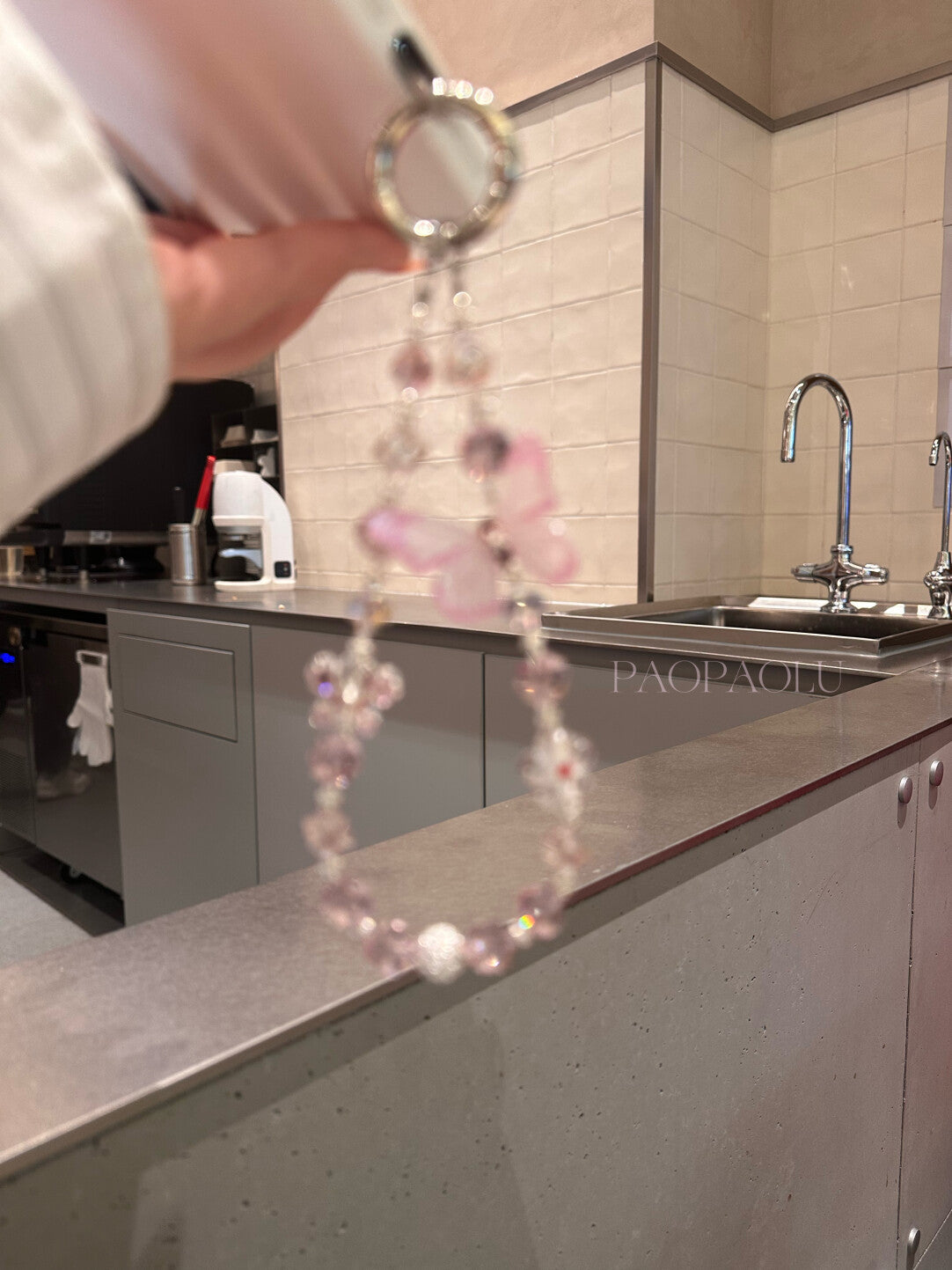 Add a burst of joy to your phone with the Pink Butterfly Sparkle Beaded Phone Charm. Featuring beautiful pink butterflies, delicate pink beads, and charming floral accents, it shines with a playful sparkle that brightens your day every time you see it.