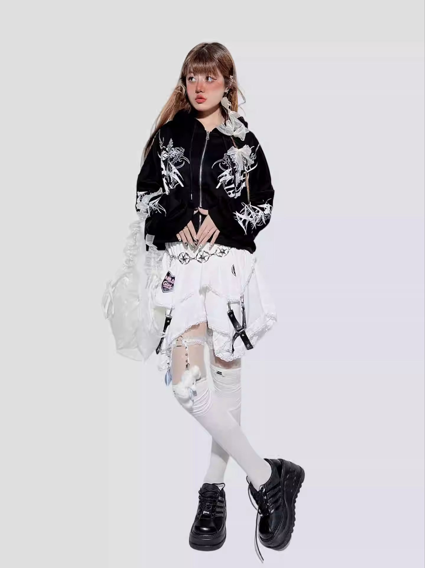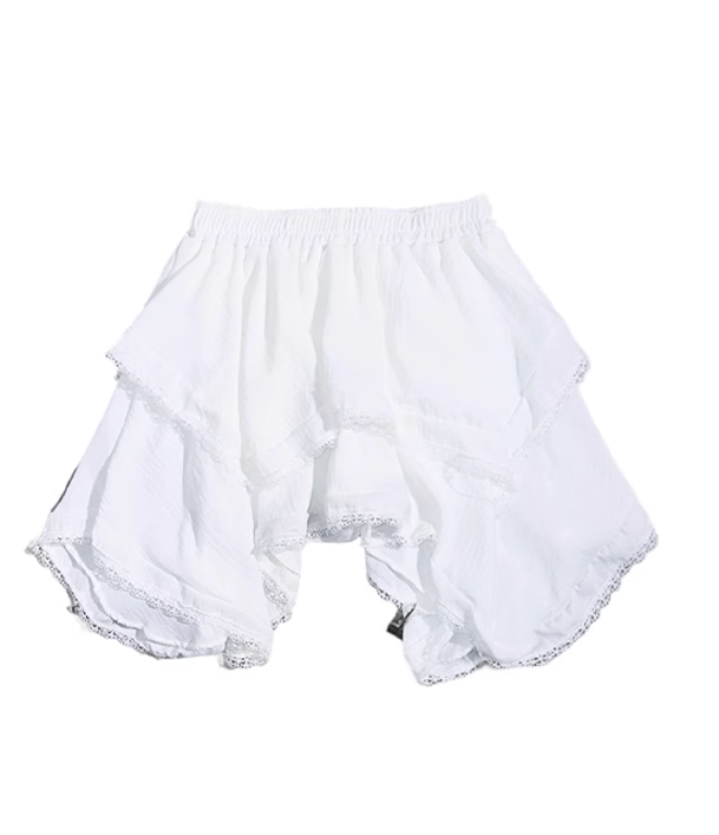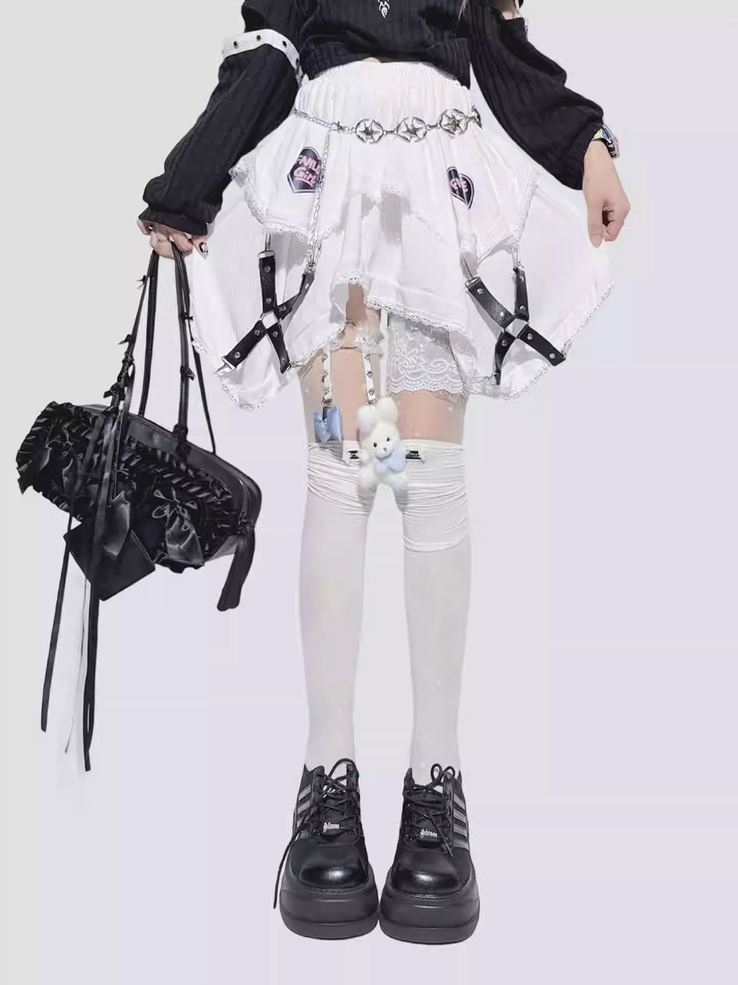 Embrace your sweet-and-edgy side with this stunning layered cake skirt! Featuring voluminous tiers and an asymmetrical hemline, it creates an eye-catching silhouette that's anything but ordinary. Delicate lace accents add a touch of elegance, while decorative belt straps bring that cool-girl edge. The elastic waistband ensures all-day comfort without sacrificing style. Perfect for anyone who loves mixing feminine charm with bold attitude!