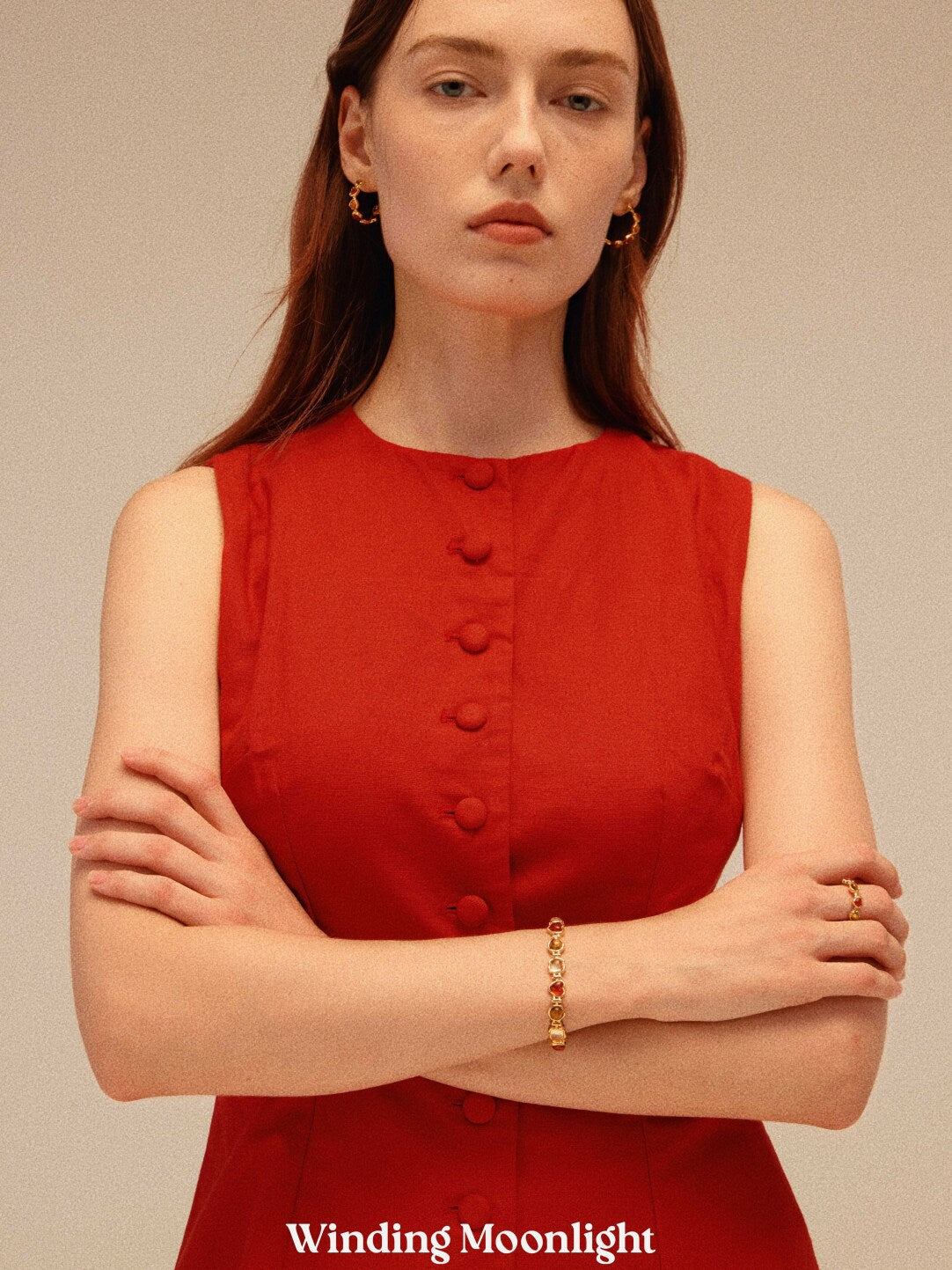 Crafted from copper plated with 18K gold, this bracelet combines tiger's eye, red agate, and glass beads for a rich Renaissance look. Its vintage charm and earthy colors make it perfect for both casual wear and elegant occasions. Easy to stack and timeless in style.