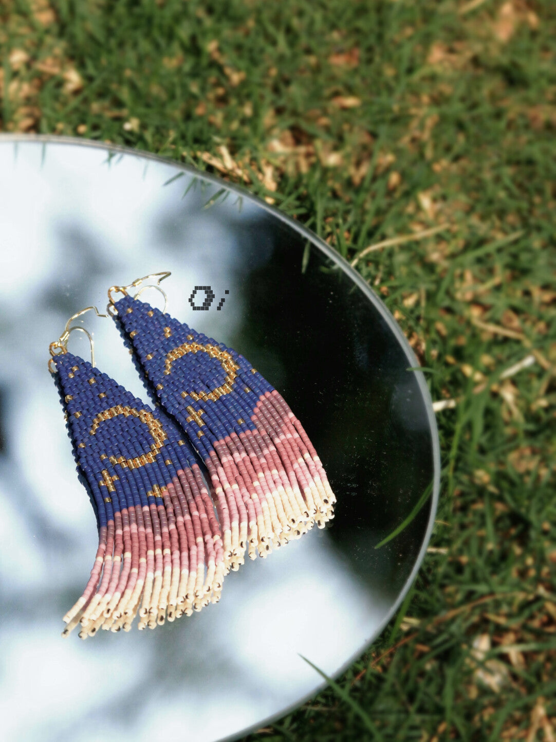 Handmade with MIYUKI beads, these earrings feature delicate star and moon designs. Their celestial charm and lightweight feel add a dreamy touch to daily outfits, dates, or special events.