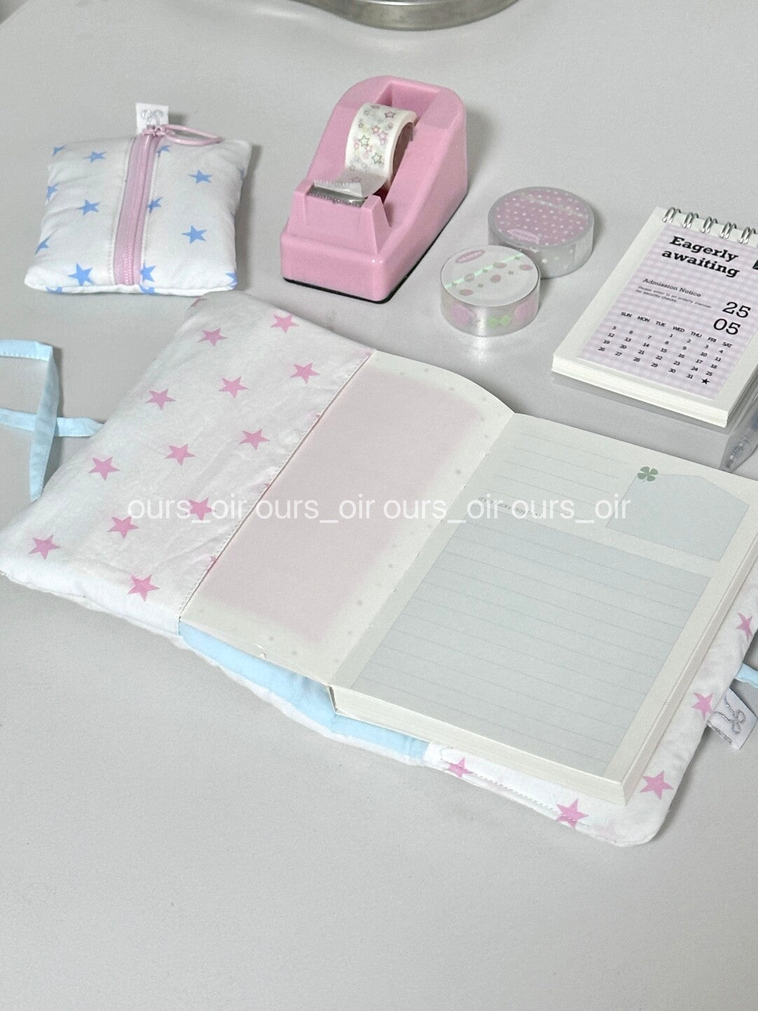 Wrap your notebook in pure adorableness with this plush book cover! Featuring charming star designs and a sweet bow tie accent, it's crafted from the softest material that feels amazing in your hands. The protective shell keeps your journal or notebook safe from daily wear while letting your personal style shine through. Perfect for customizing your reading essentials or gifting to a stationery lover. Note: Cover only—bring your own notebook to complete the look!