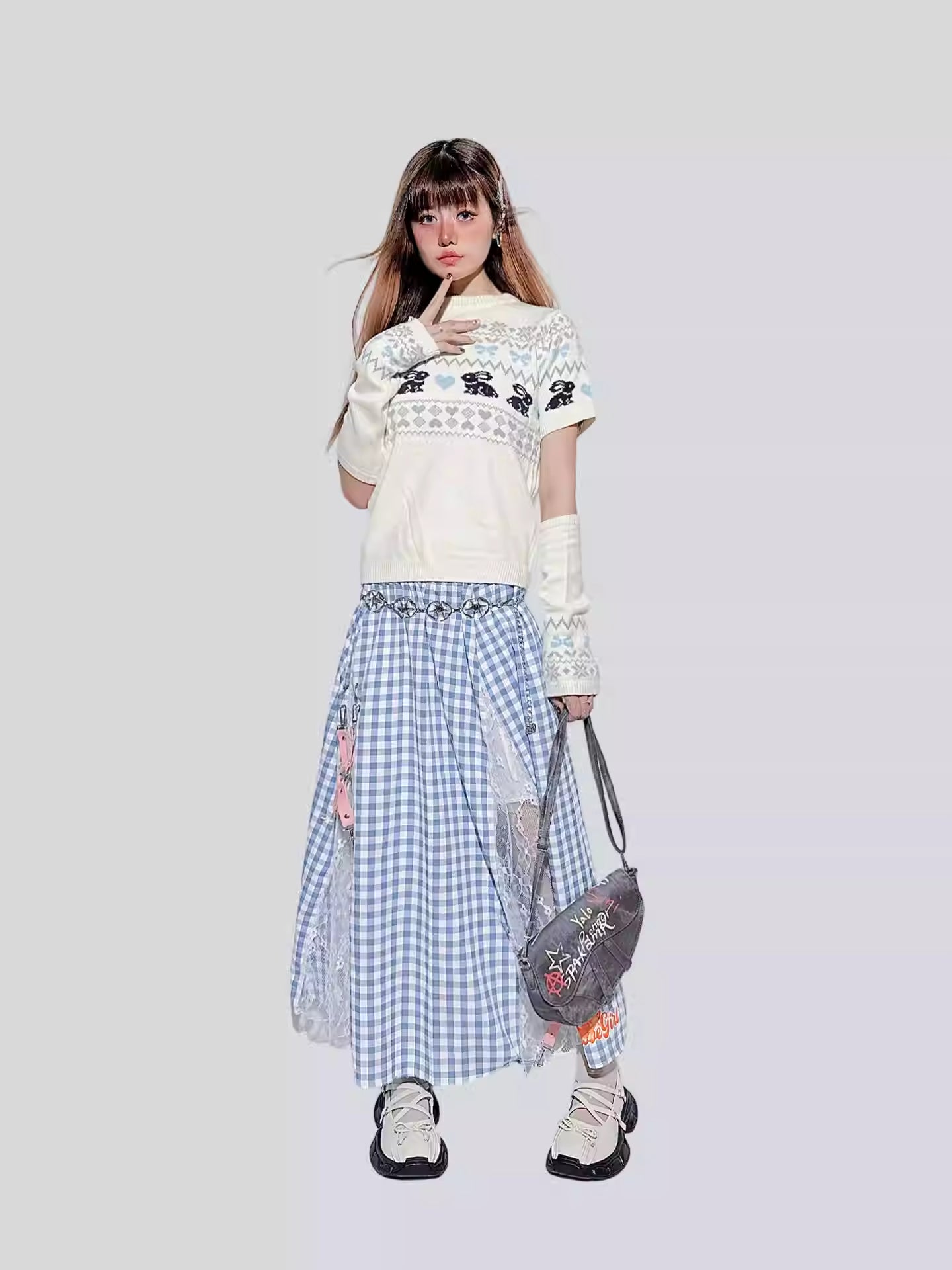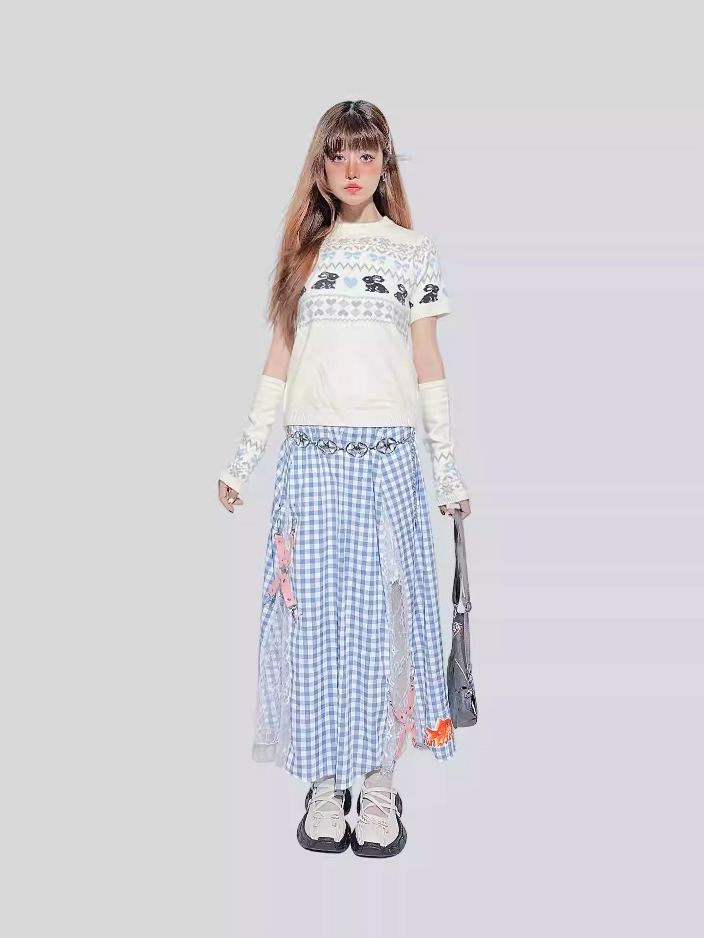 This Sweet Bunny Knit Sweater features charming detachable half sleeves that let you switch up your look with ease. Adorned with an adorable bunny design, it adds a touch of playful sweetness to any outfit. Perfect for cozy days when you want both style and comfort!