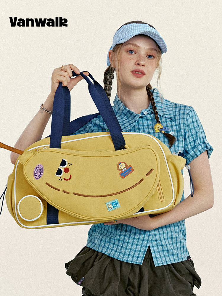Vanwalk Fruit Power Badminton Racket Bag combines style with serious functionality. Choose between a cheerful yellow banana or quirky black caterpillar design—both feature detachable pouches that work independently for extra versatility. The spacious main compartment fits up to 15.6-inch laptops, making it perfect for badminton sessions, weekend getaways, or daily adventures. Water-resistant construction keeps your gear protected whether you're heading to the court or traveling. Pack your racket, clothes, and essentials all in one playful package.