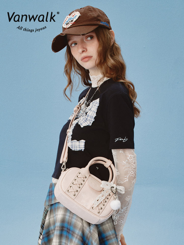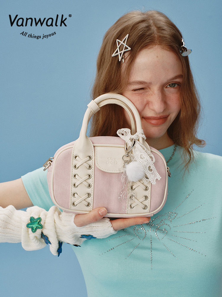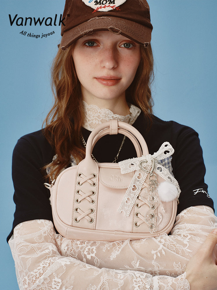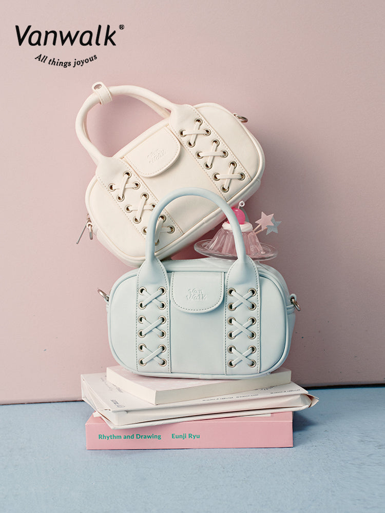 The Vanwalk Happy Band Series Boston Shoulder Bag features a playful cross-strap design crafted from sleek leather. Carry it by hand or wear it crossbody for versatile style. Inside, a zippered pocket and slip compartments keep your essentials organized. With its ultra-fashionable ballet-inspired flair, this bag adds a fun and elegant touch to any outfit.