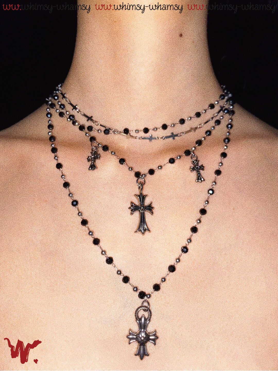Show off your unique style with the Vintage Rock Cross Black Beaded Layered Necklace. This trendy accessory adds a cool edge to any outfit, making it a must-have for effortless street fashion and standout looks. Perfect for those who love to mix bold vibes with everyday charm!