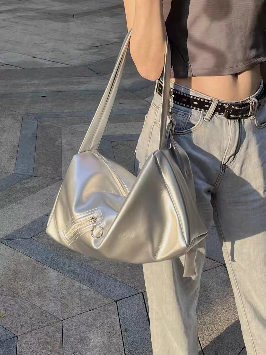 This simple yet stylish Y2k Shoulder Bag is the perfect way to transport your belongings in style. It has a big capacity, allowing you to store all your essentials with ease. The silver exterior adds an eye-catching yet sophisticated finish.